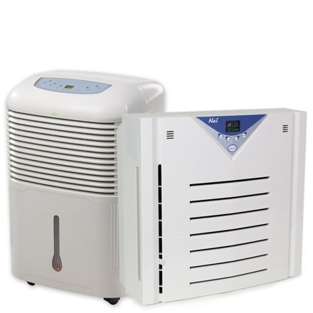 This package combines the Alen A350 energy star Air Purifier with the energy star Alen MDF3-30 pint dehumidifier to provide moisture control and a high level of airborne particulate removal for a smaller-sized room. Designed to fit most smaller-sized rooms such as a shower or basement, the Alen MDF3-30 dehumidifier provides superb performance at a great price. The 30 pint energy star rated dehumidifier delivers 490 watts of dehumidifying power, strong enough for up to 350 square feet. The MDF3-30 has a 5 liter inner water tank and two options for emptying the removable water tank or continuous drainage through a traditional water pipe. This model offers two fan speeds and a humidistat that allows the user to set humidity levels from 35% 80%. For optimal indoor air quality, we recommend a setting between 35% and 50%. The Alen A350 features strong performance in particulate removal and it does this while consuming low levels of energy. A350 air purifier: One combination Pre-filter, HEPA Filter and carbon filter makes filter changing easy 4-speed settings and 12 hour timer Wall-mountable space saving design or can be placed on the floor Built-in Ionizer to effectively minimize pollutants Ionizer can be manually turned on or off produces no ozone Filter change indicator Digital display with simple and intuitive touch button controls Single filter changing helps keep track of when to replace the filters since they are all replaced at the same time EnergyStar qualified Air Purifier Alen 30 pint dehumidifier: Energy Star Qualified Automatic Shut Off once the Internal Bucket Fills Casters for Easy Mobility Convenient Handles Washable Air Filter Operation: Continuous or User Set Humidistat Control Continuous Drain: Available (hose not included) 2 Fan Speeds Removable Water Tank Electronic user interface Dehumidifier Moisture Removal: 30 Pints Coverage Area (Sq. Ft): 350 Water Tank Capacity: 5 Liters Power Supply: 115V/60 Hz Power Consumption (Watts): 490 Noise Level (dBA) Hi